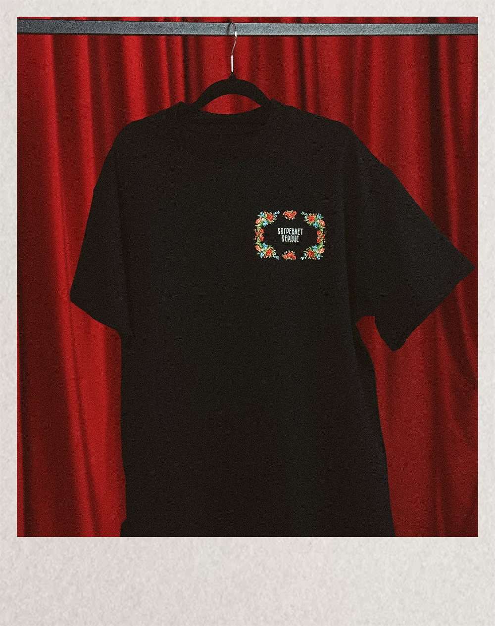 Нежная вышивка «Согревает сердце» в цветочном орнаменте, вдохновлённом тюменскими коврами. В каждой ниточке — тепло и маленькая история: она делает обычный день чуть мягче и светлее.